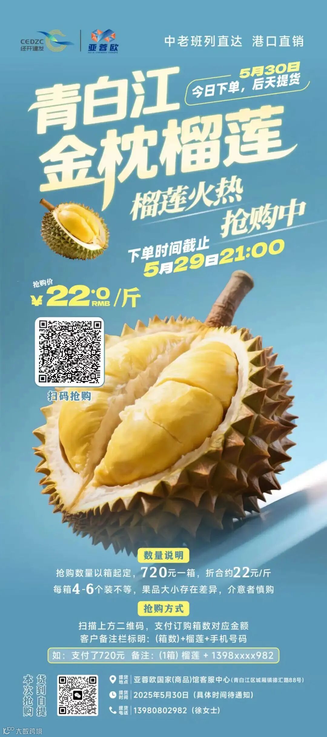 当 “钢铁驼队” 载着甜蜜而来,青白江的 “榴莲故事” 才刚刚开始。从家门口的 “新鲜体验” 到辐射西南的 “产业矩阵”,这颗金黄的水果,正以独特的香气,勾勒出内陆开放高地的新图景 —— 这里不仅有 “一带一路” 的速度与温度,更有 “买全球、卖全球” 的信心与决心。