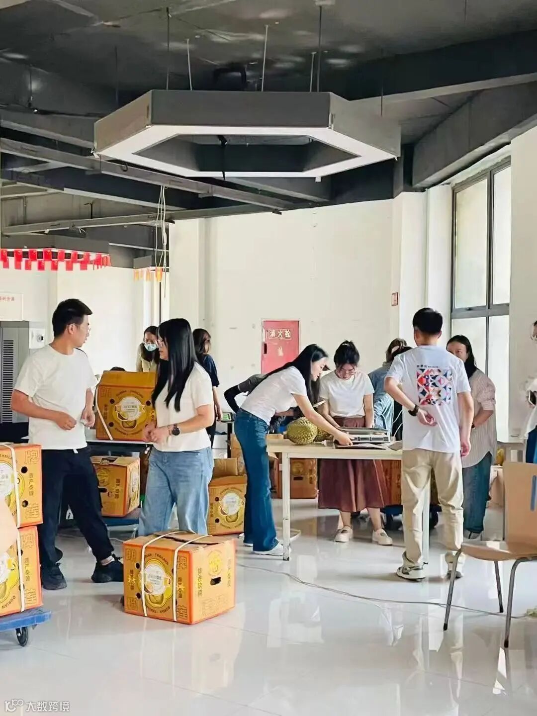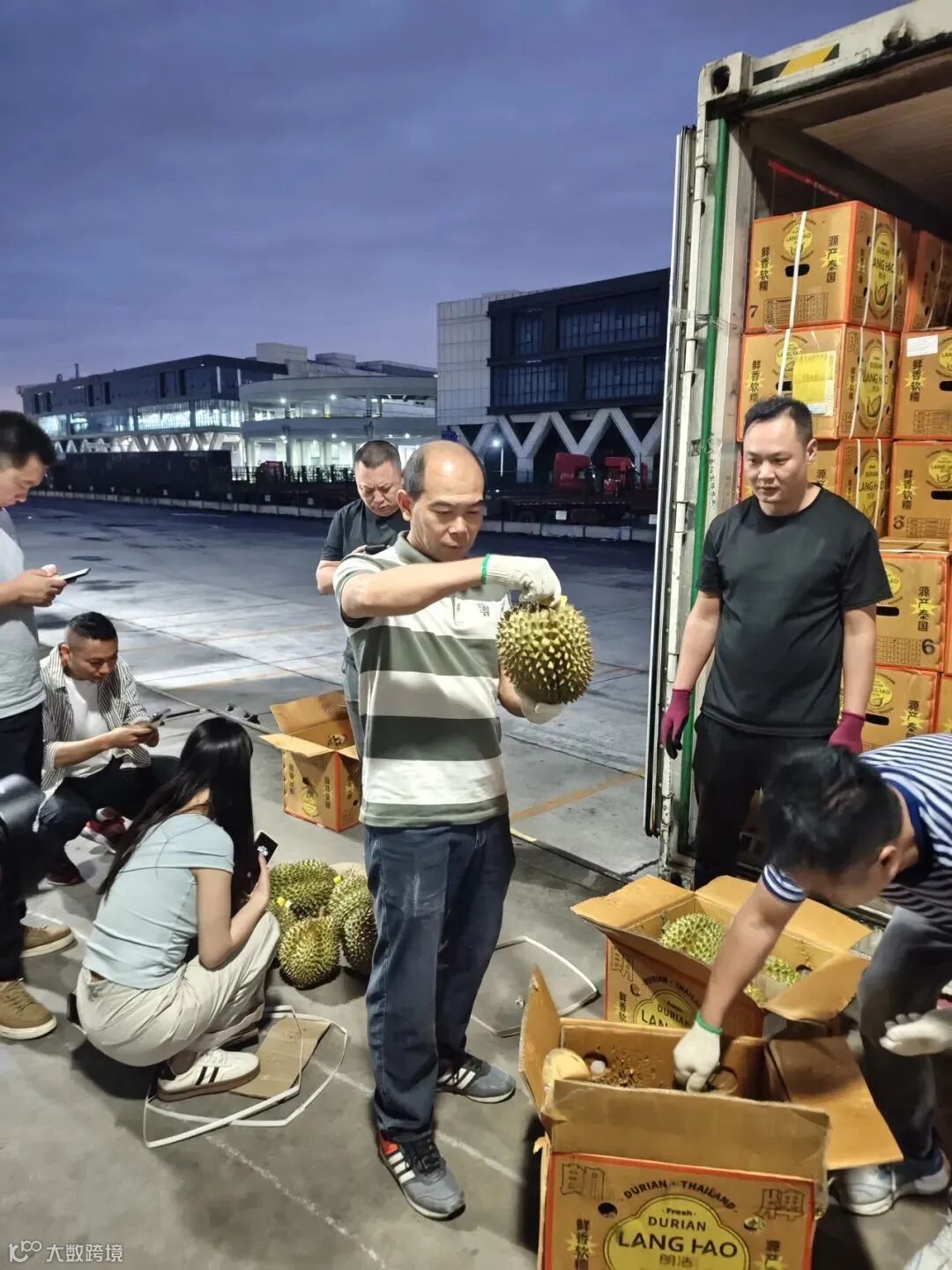 提货现场,工作人员有序开展各项分发工作。消费者手提沉甸甸的榴莲频频点赞。据介绍,此次进口榴莲通过“产地直采+班列直达+港口直销”模式,省去传统流通中间环节,实现 “从枝头到舌尖” 的最短距离。