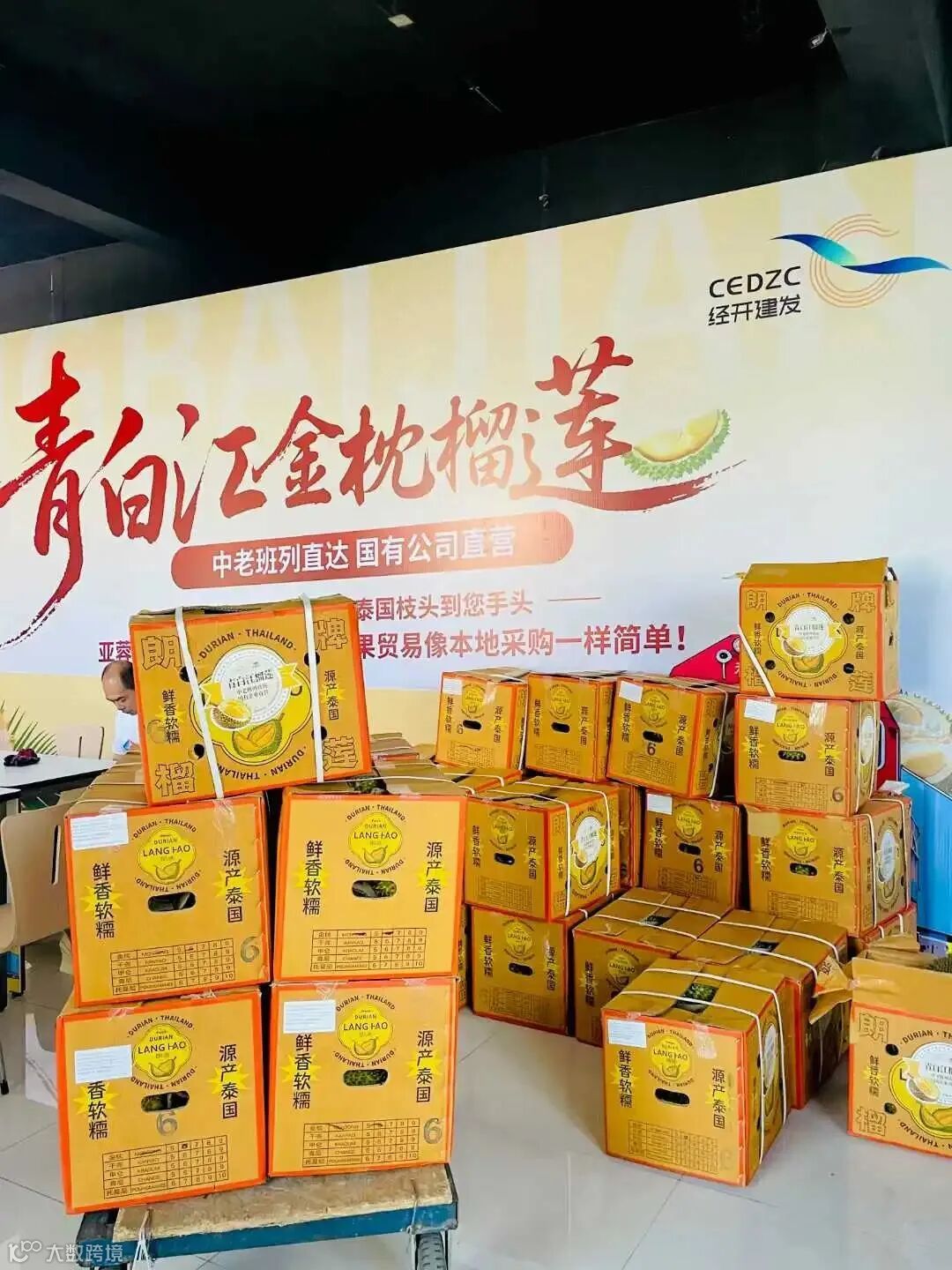 此次榴莲零售的背后,是一条横跨三国的 “新鲜产业链”:在泰国榴莲主产区,亚蓉欧公司组建专业采购团队直采优质果源;中老班列化身 “移动冷链仓”,穿越老挝琅勃拉邦,经磨憨口岸直达成都国际铁路港;港区内的智慧冷链物流基地实时温控,确保榴莲 “鲜度不减分”。这种 “产地直采+班列直达+港口直销”的全链条模式,不仅让消费者花更少的钱吃到更鲜的果,更开创了“东南亚水果借道中老铁路入川、川渝市场辐射西南” 的贸易新路径。