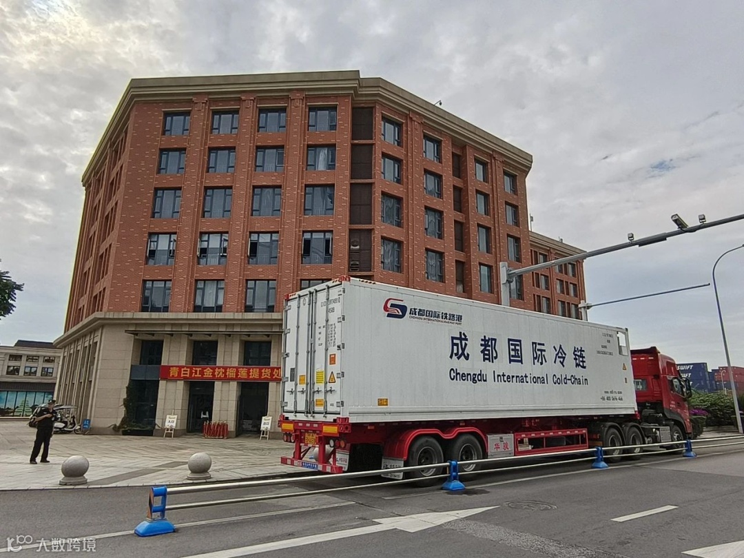 继2022年12月3日首批榴莲顺利 “登陆”港区后,青白江的 “榴莲版图” 一直加速扩张:依托中老铁路国际物流通道,港区已开通 “中老班列进口榴莲出川分拨专线”,成熟旺季可实现每日榴莲专列抵港,经冷链车队分拨至广州、嘉兴等全国枢纽市场。按照规划,这里将构建集 “海外直采、铁路运输、冷链仓储、批发零售、电商直播” 于一体的全产业链体系,力争打造成西南最大榴莲批发集散基地,成为继 “中欧班列红酒” 之后又一标志性进口商品品牌。