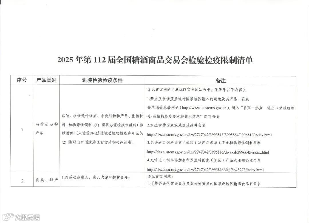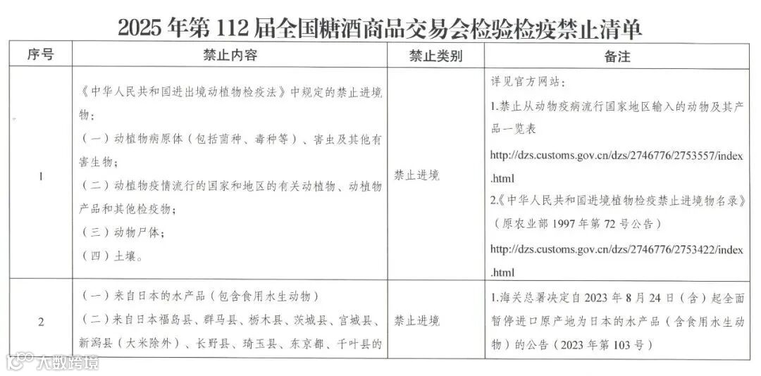 以及《2025年第112届全国糖酒商品交易会检验检疫禁止清单》要求