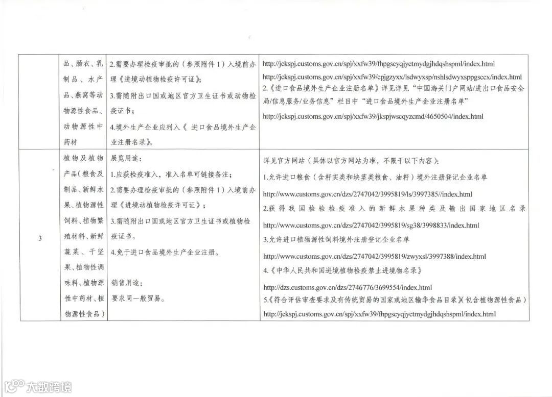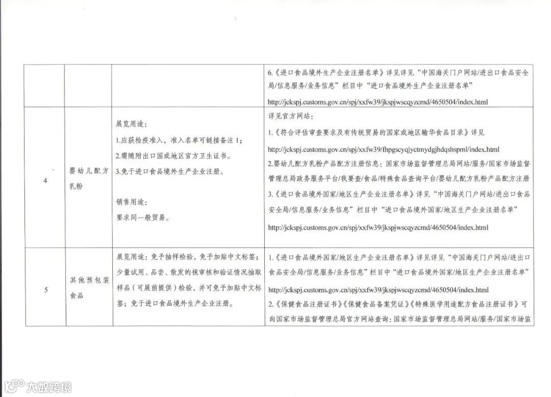 仅供展览的预包装食品免予加贴中文标签和抽样检验,免予核查收发货人备案证明;对于少量试用、品尝、散发的食品,企业可提供符合要求的合格证明,如参展国官方证书、第三方检测报告、参展商自验合格报告、参展商合格申明等,根据食品安全风险评估情况,可展前抽取样品检验,免予加贴中文标签。