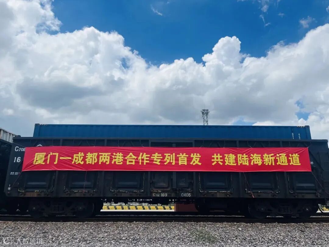 这是在四川自贸试验区青白江片区管理局和厦门自贸片区管委会签署战略合作框架协议后,首发厦门-成都两港合作专列,推进共同打造陆海联运新通道。此次两港合作专列的开通,既是落实两地合作项目,推动成都拓展东南出海口、厦门拓展内陆腹地,共建陆海新通道的重要举措;也促进了两区联动发展,进一步提升成都国际铁路港铁海联运竞争力。