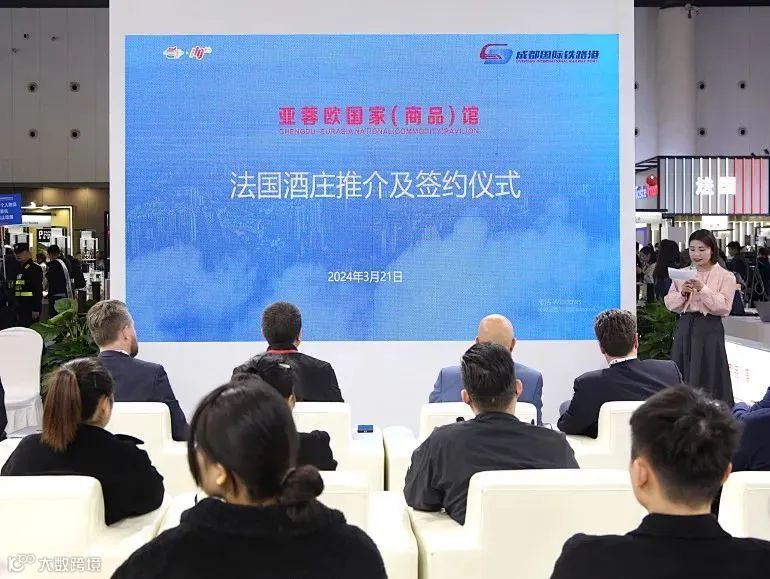 3月21日下午,“法国酒庄推介及签约仪式”在青白江区亚蓉欧国家(商品)馆进口商品展示交易区举行。世界闻名的三大法国酒庄——翡马、吉哈伯通、欧亨贝罗的代表介绍了各自酒庄的发展历史、葡萄酒代表品牌,并与法国馆签署战略合作协议。根据协议,各酒庄将充分发挥各自优势,以法国馆为平台,为中国西南消费者提供海外集采、定制酒、酒庄游等服务。