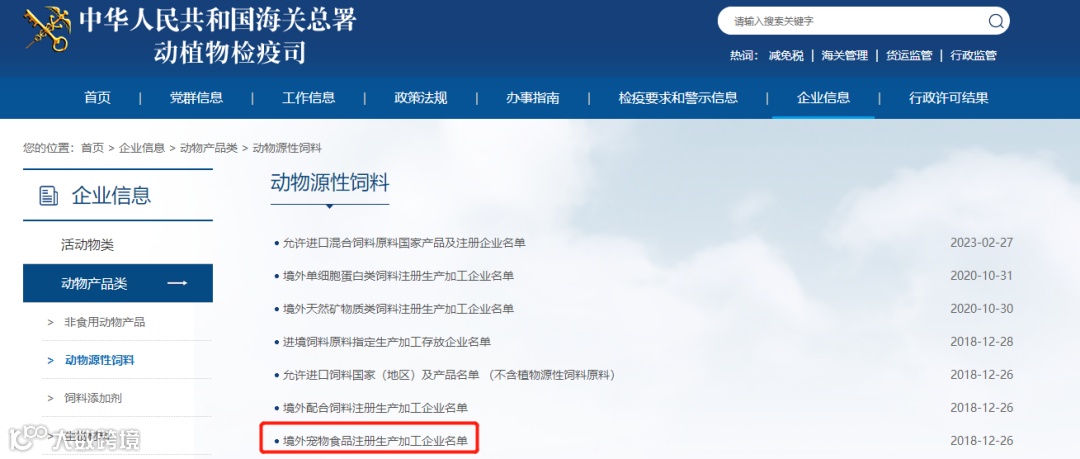 (4) 海关按照以下要求对进口宠物食品实施检验检疫:中国法律法规、国家强制性标准和相关检验检疫要求;双边协议、议定书、备忘录中列明的检验检疫要求;《中华人民共和国进境动植物检疫许可证》列明的要求。境外宠物食品注册生产加工企业名单查询:登录海关总署网站--动植物检疫司--企业信息--动物产品类--动物源性饲料中查询《境外宠物食品注册生产加工企业名单》(网址:http://dzs.customs.gov.cn/)