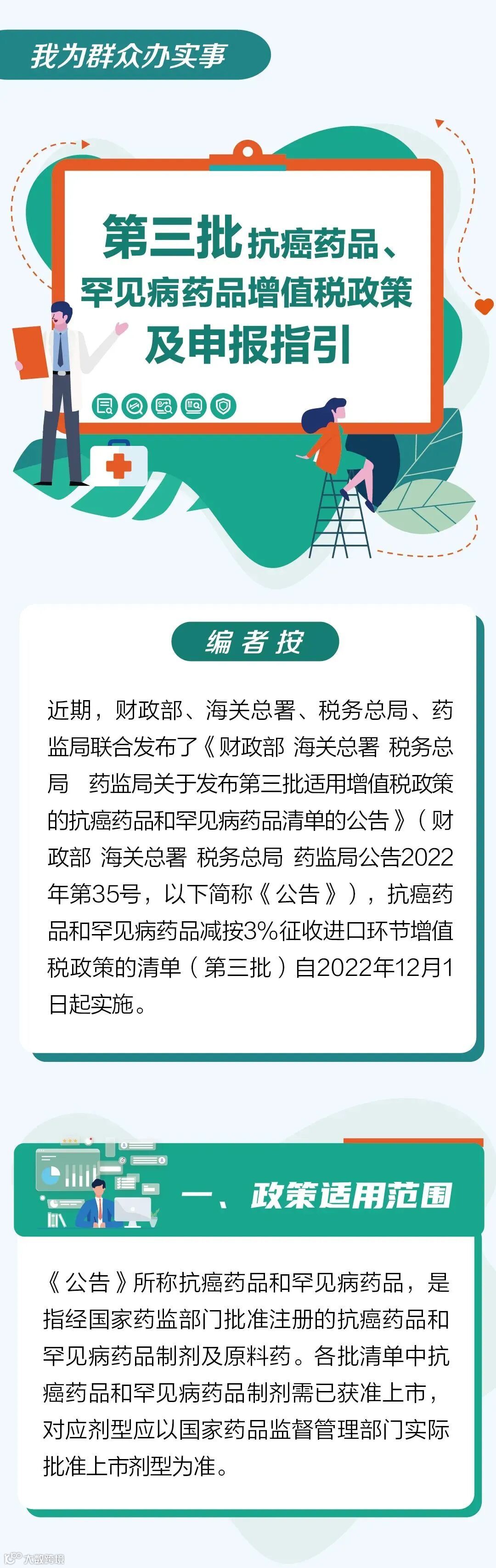 关税聚焦|我为群众办实事——第三批抗癌药品、罕见病药品增值税政策及申报指引