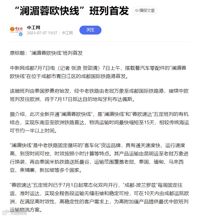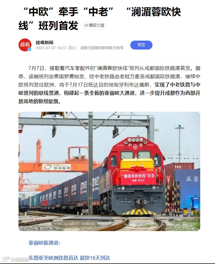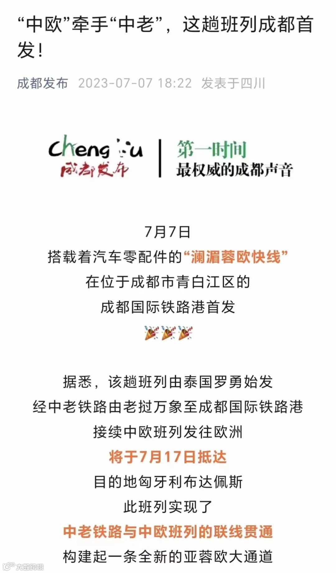 (罗勇—万象—昆明—成都—布达佩斯)班列