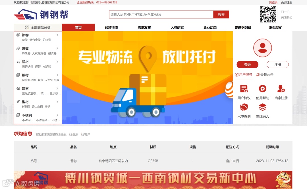 据悉,“钢钢帮—云商平台”是集钢材产品展示、在线咨询、求购信息发布、成交动态、钢铁指数、智慧物流服务、供应链金融服务等多功能于一体的专业钢材贸易服务平台。目前已经完成除物流、金融及在线交易模块的平台功能开发,将实现足不出门、在线看货。