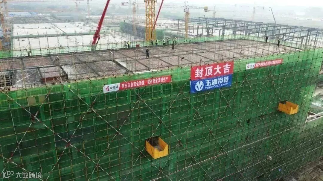 玉湖冷链(成都)交易中心项目首栋综合配套楼顺利封顶;首座冷库二层钢结构安装完成;交易区地下室全面封顶;招商中心内部装修基本完成,即将启用。