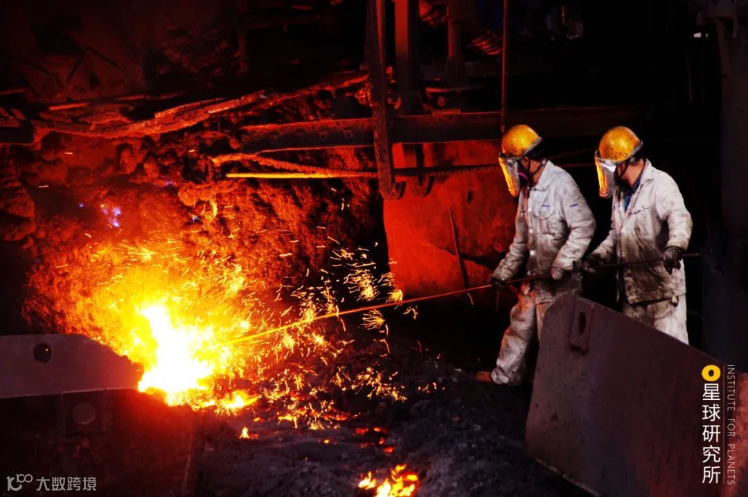 攀成钢停炉前的“最后一炉铁水”,工人师傅用钢钎通路堂 | 摄影师@秦继勋