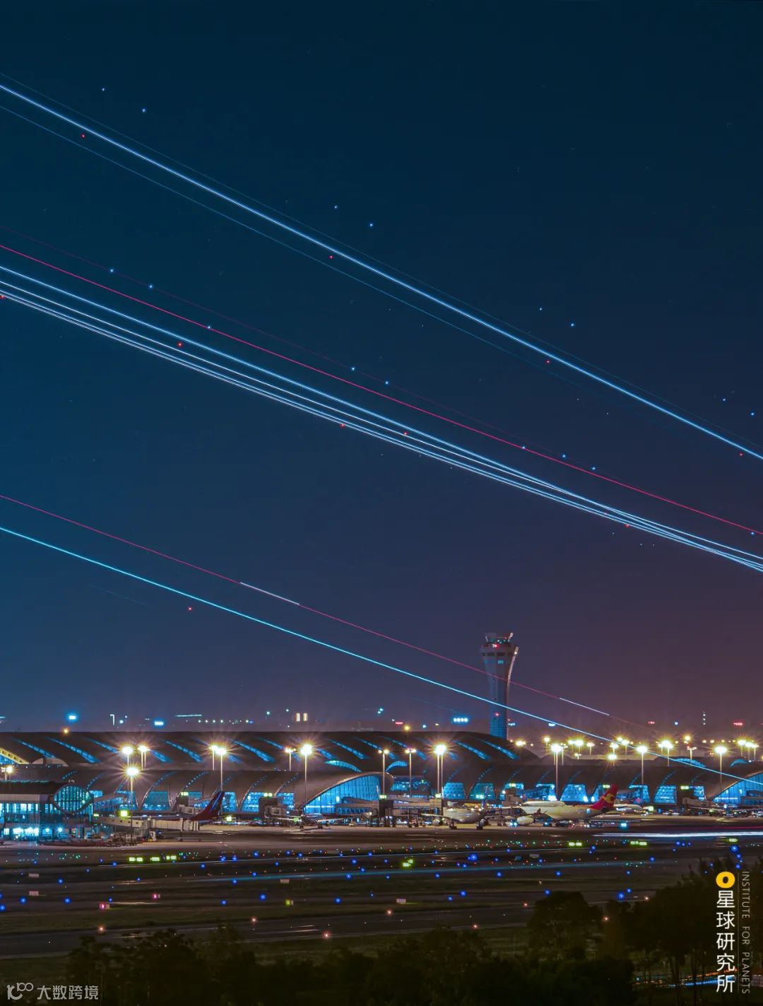 成都双流机场,飞机划过,如丝的轨迹留在深邃的夜空 | 摄影师@凌源