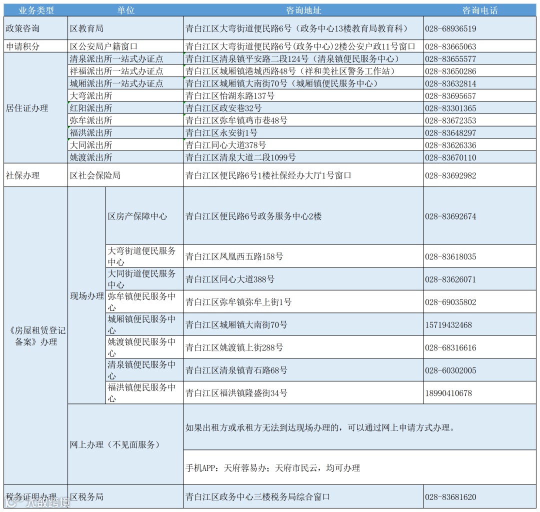 2.在青白江区办理的四川省居住证(市内区外户籍只需提供有效期内的居民身份证)。