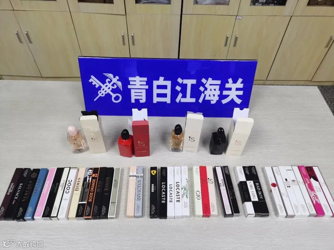 成都某公司申报一批出口货物,货物申报品名为清香型喷雾等,实际查验过程中发现为“BOOS”“VSL”“CHENAEL”“GIOR”等近似大牌香水,共计4596套,申报货值共计10.5万元。