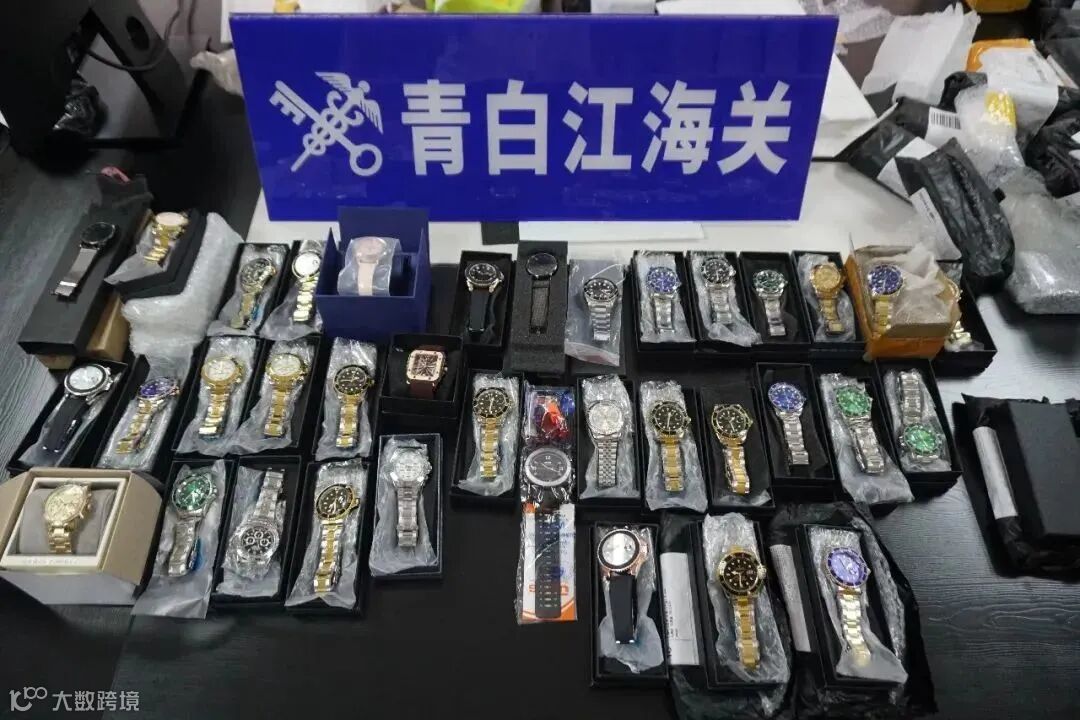 成都某公司申报一批跨境电商直购出口(9610)货物,申报品名为日用百货、户外工具、手表等,现场关员实际查验过程中,发现部分包裹里存在“劳力士”“欧米茄”“江诗丹顿”等高端品牌手表,申报价格较低且做工粗糙,随即扩大查验范围,查获侵权手表312只,申报货值共计10.33万元。