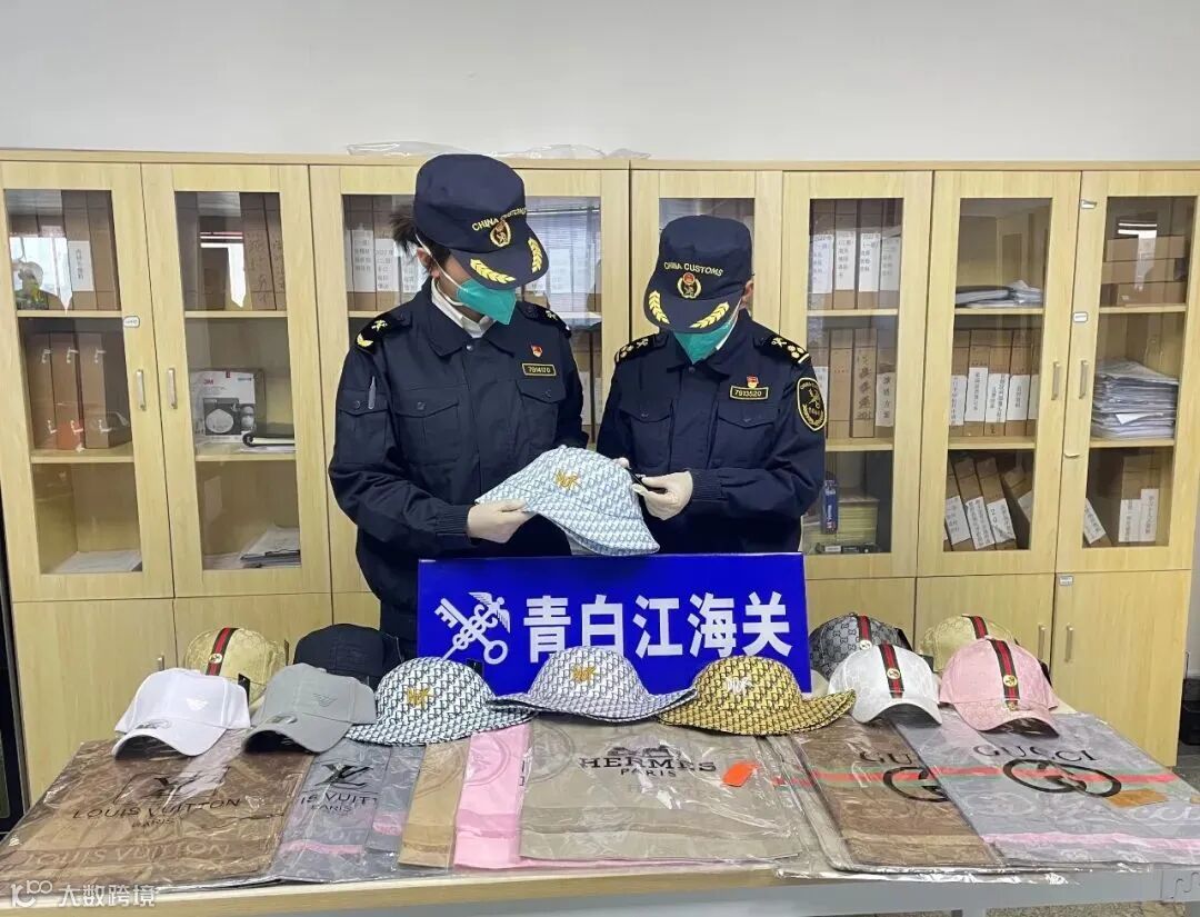 2021年,青白江海关共查获HERMES、LV、GUCCI、DIOR、ARMANI等品牌侵权服装、箱包约1.2万件,申报货值共计19.20万元。