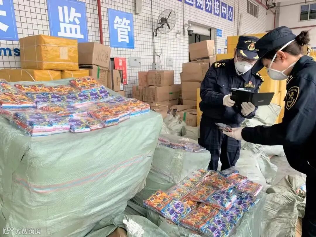 成都某公司申报出口一批市场采购贸易方式货物,货物申报品名为桌角保护套、墙贴等,现场关员实际查验过程中,发现未申报货物运动套装750套,POKEMON卡牌81万张,卡册8600套,申报货值共计9.9万元。