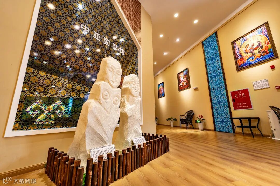 中亚五国馆于2021年5月建成开馆,占地1000平米。主要划分成民俗文化区、一站式签证服务区、中亚国家展厅三个区域。中亚国家展厅作为场馆的主要部分,由哈萨克斯坦、吉尔吉斯斯坦、乌兹别克斯坦、塔吉克斯坦、土库曼斯坦五个展厅组成。