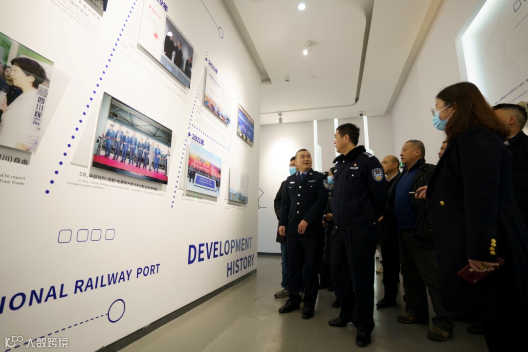 祥福派出所所长兰静带领参会嘉宾参观成都国际铁路港展示中心,向嘉宾们介绍辖区特色。