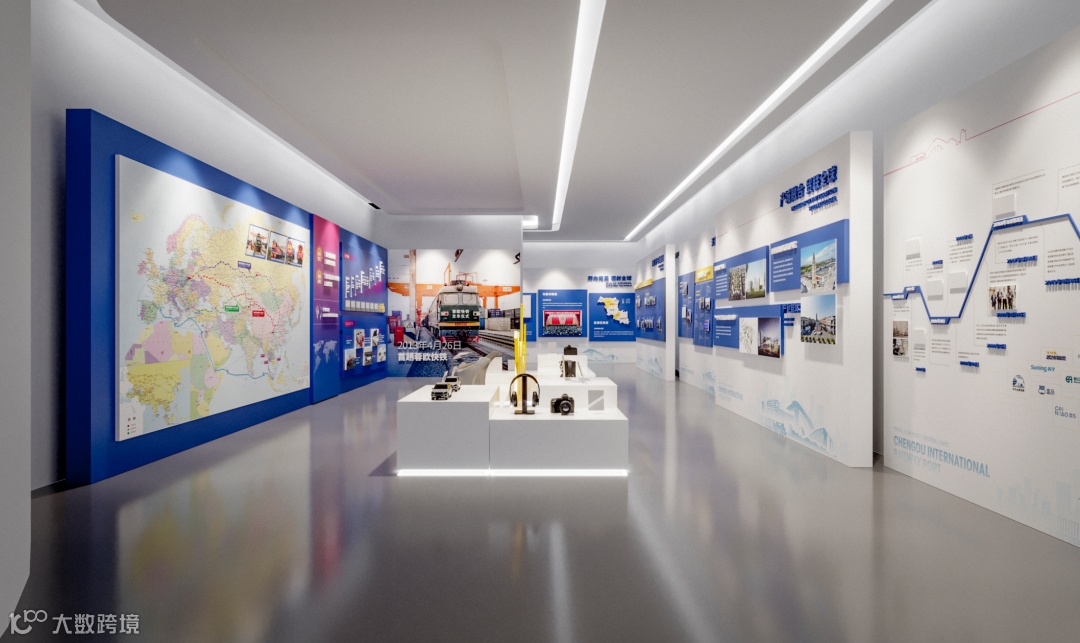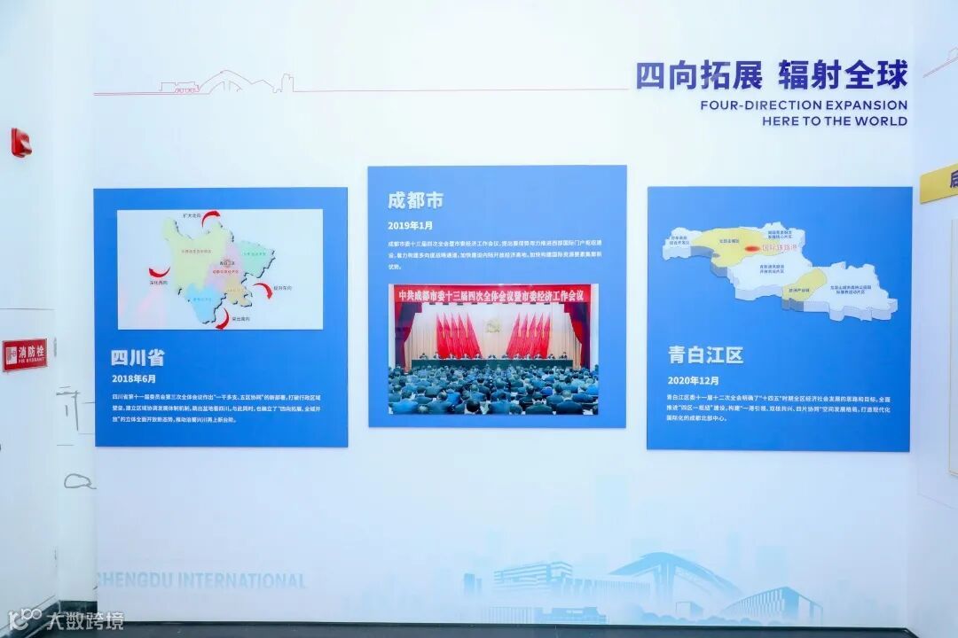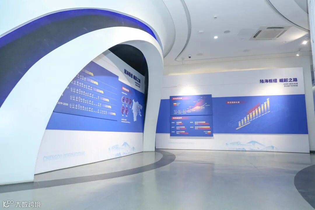 展览分为“时代背景”“四向拓展 辐射全球”“陆海枢纽 崛起之路”“产城融资 贸联全球”“天府门户 开放枢纽”“携手并进 共绘蓝图”六个部分。