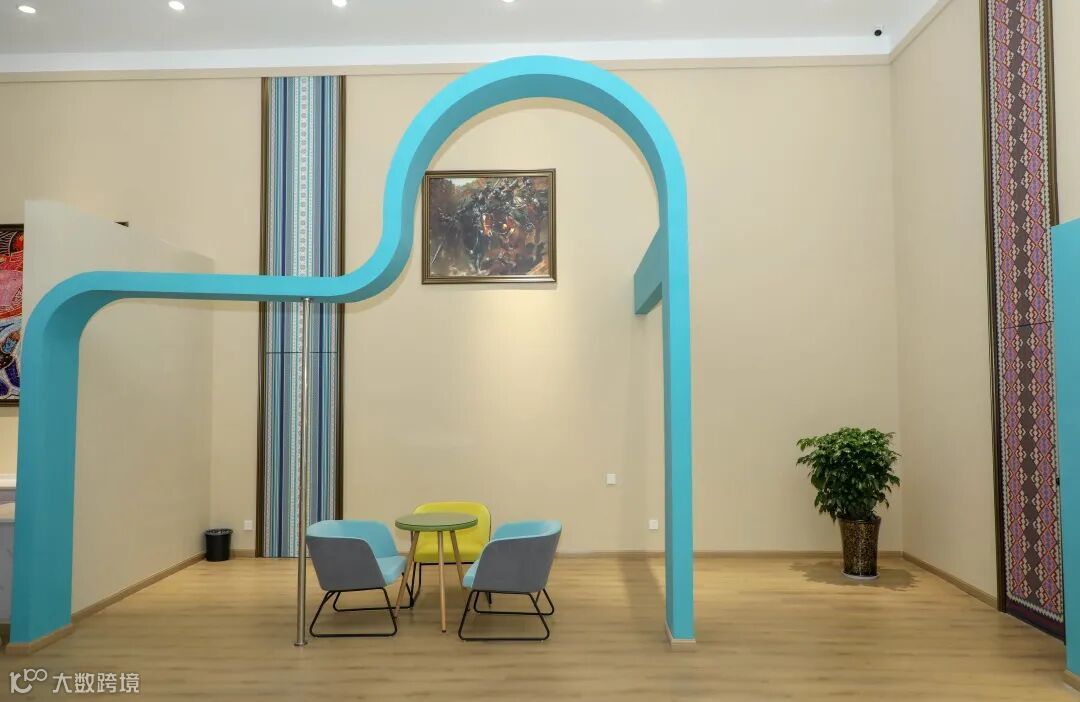 从哈萨克斯坦馆出来一直往前走到底就是中亚馆群,馆内按照哈萨克斯坦、吉尔吉斯斯坦、乌兹别克斯坦、塔吉克斯坦、土库曼斯坦等国家文化特点来建造,主要分为独立空间的民俗文化区、民族产品展示区、一站式签证服务区。