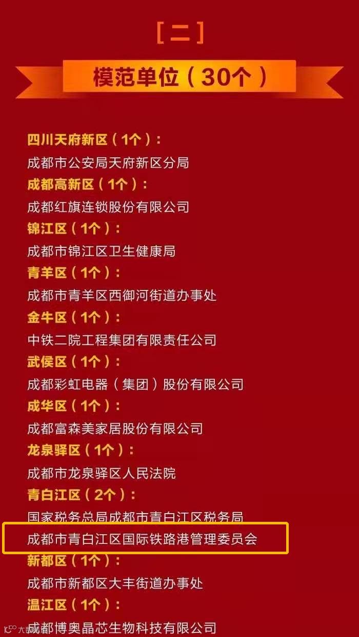 11月6月,成都国际铁路港获2019年投资和重点项目推进全年目标任务圆满完成的单位及个人。
