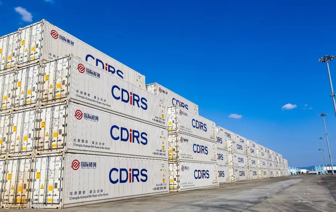 成都国际铁路港,一列载有50个货运专柜的中欧班列从中心站缓缓驶出,装载着汽车配件和电动工具,为德国博世集团提供机械装备。
