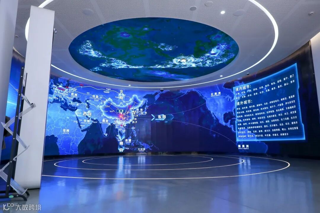 一层序厅以四向通道为起点,依托7条国际铁路通道和6条国际铁海联运通道,目前连接境外58个城市和境内20个城市,构建以成都为枢纽、联系太平洋和大西洋的新亚欧大陆桥。