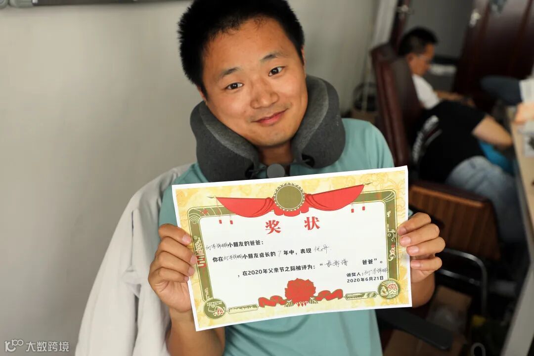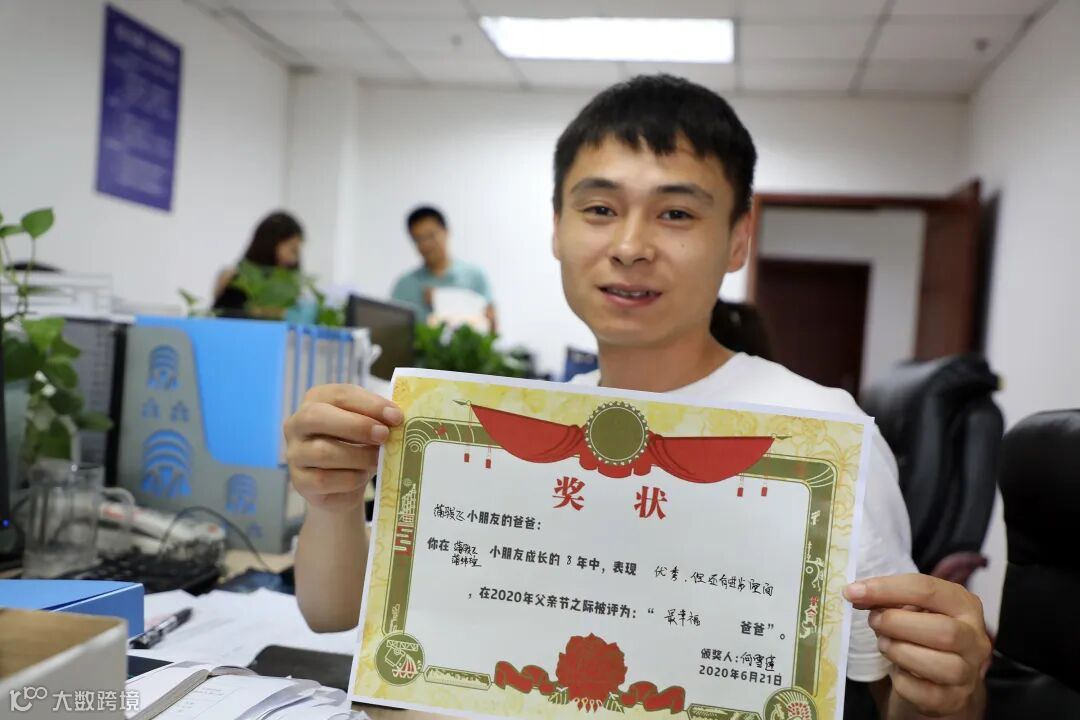 在伴随两位小朋友成长的过程中,这位笑得一脸阳光的爸爸,做到了随叫随到、贴心备至,得以获此殊荣~(p.s:颁奖人是小朋友的母亲哦)
