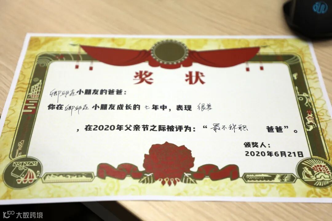在小朋友成长的七年时光里,这位爸爸表现优异,得到了小朋友的认可,荣获“最靠谱爸爸”称号。