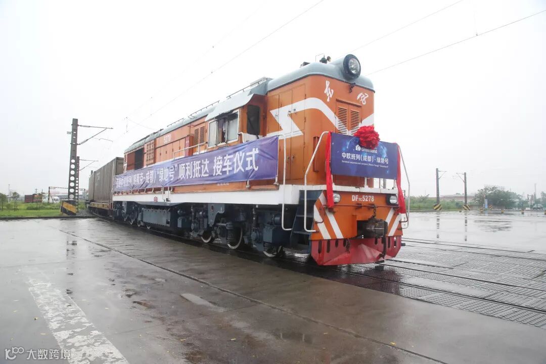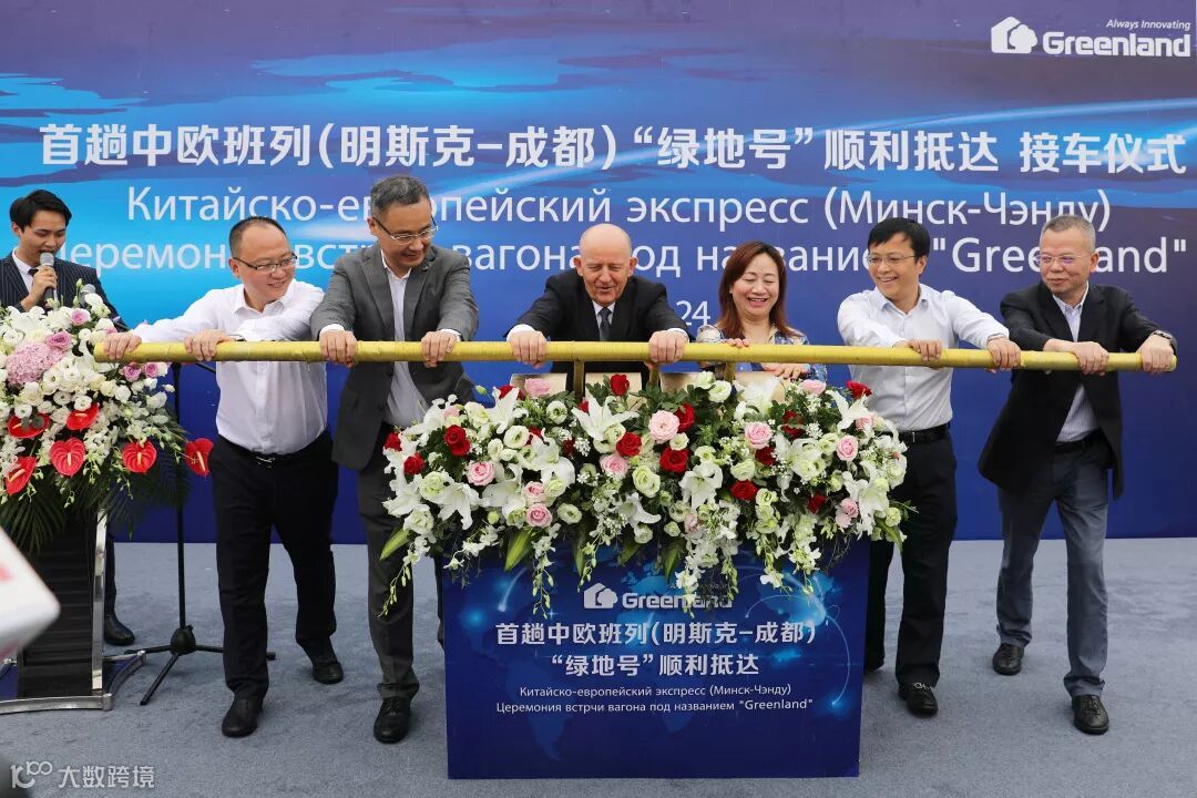 7月24日,首趟中欧班列(明斯克-成都)“绿地号”回程班列的接车仪式在成都铁路集装箱中心站顺利举行。