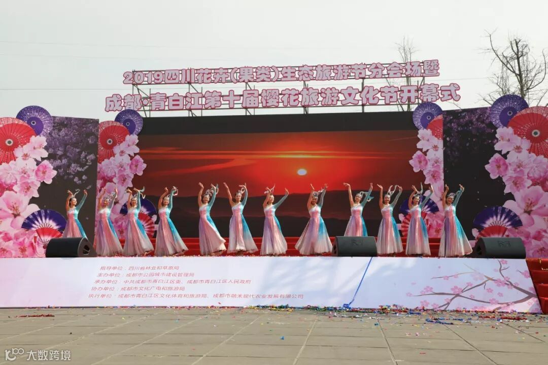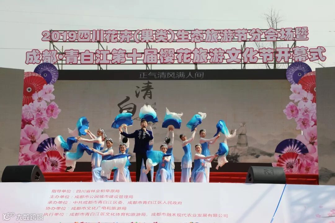 3月20日,2019四川花卉(果类)生态旅游节会分会场暨成都·青白江第十届樱花旅游文化节开幕式在青白江区凤凰湖汉唐文化街广场隆重举行。