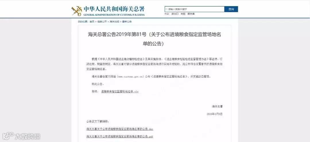 El 8 de mayo, la Administración General deAduanas publicó ¨el Comunicado 81 sobrela Publicación de la Lista de Sitios de Supervisión Designados para GranosImportados ¨ del año 2019, el sitio de supervisión designado para granosimportados de la estación del puerto ferroviario de Chengdu también estáincluido dentro de la lista. Ésto significa que está formalmente aprobado laaceptación del sitio de supervisión designado para granos importados de laestación del puerto ferroviario de Chengdu, que posee las condicionesrequeridas y está debidamente calificada para la importación de granos yentrará en operación, ha perfeccionado y mejorado la eficiencia defuncionamiento y el nivel de servicios del puerto ferroviario de Chengdu.