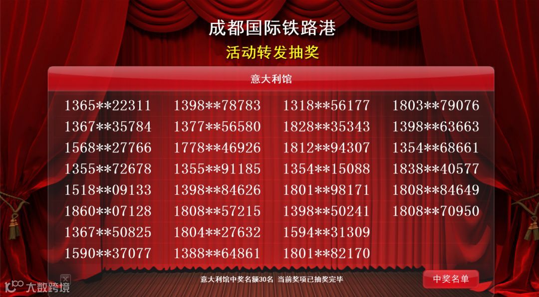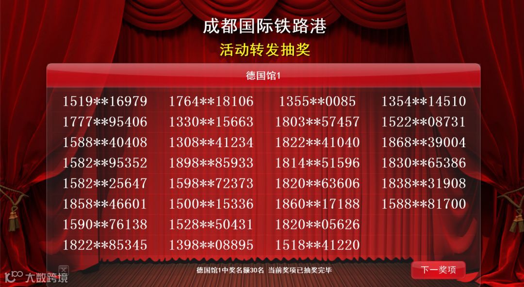 2.获得德国馆、荷兰馆礼品的中奖用户请到成都国际铁路港现代物流大厦A座8楼凭中奖名单和手机号领取,活动有效领取时间截止至11月30日17:00。如需快递需支付运费。