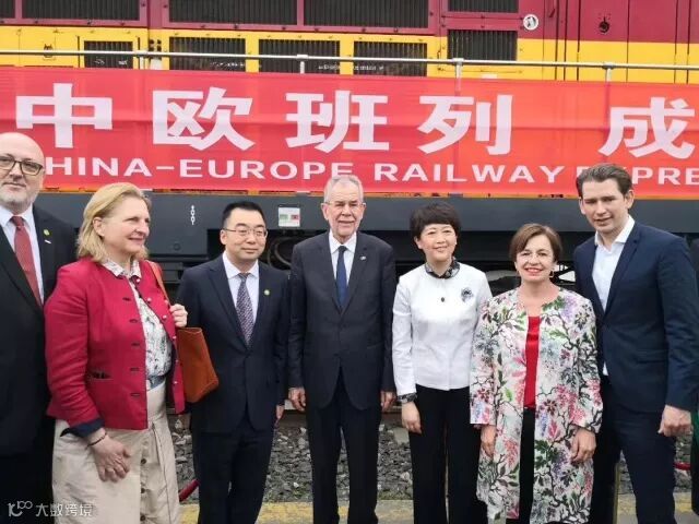 4月12日上午,奥地利总统范德贝伦、总理库尔茨及奥地利代表团一行来到成都国际铁路港共同见证中欧班列(蓉欧快铁)在蓉首发(成都——维也纳)。标志着蓉欧快铁辐射能力和运行品质的快速提升以及“蓉欧+”网络欧洲端覆盖面的进一步扩大。
