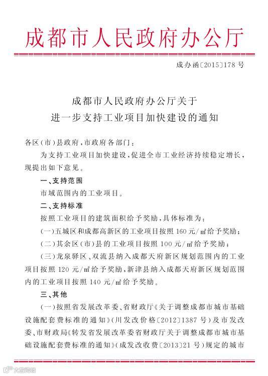 导读:成都市人民政府办公厅关于进一步支持工业项目加快建设的通知。