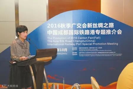 18日下午,“新丝绸之路·中国成都国际铁路港”专题推介会在广交会上隆重亮相,与全球210多个国家和地区客商见面。除了商务部驻广州特派员、中国对外贸易中心常务副主任、国际商务研究中心主任等政经大咖到场外,还吸引了60余家物流、贸易、货代等类型的适港企业代表参会。
