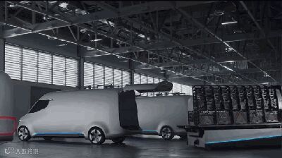 黑科技满满的物流车,既然Vision Van瞄准的是快递界,那就得有它该有的功能。首先,奔驰不仅为Vision Van设计了一套先进的装货系统,还配有专用的货架传送车,可以自动化分拣包裹,然后装车。