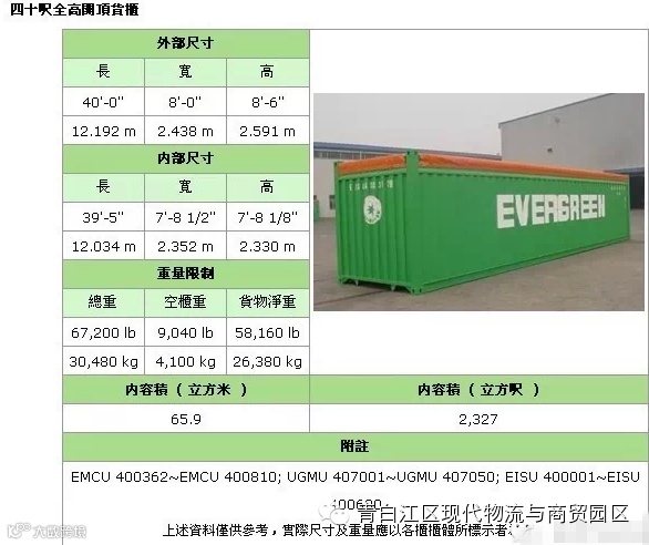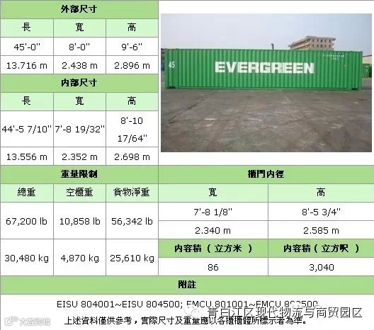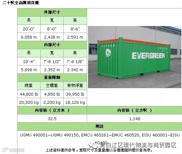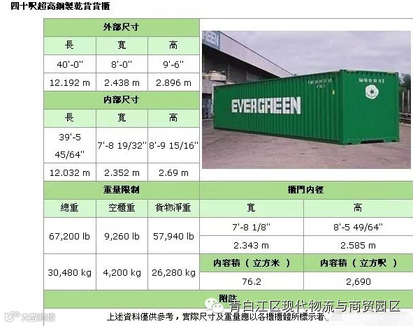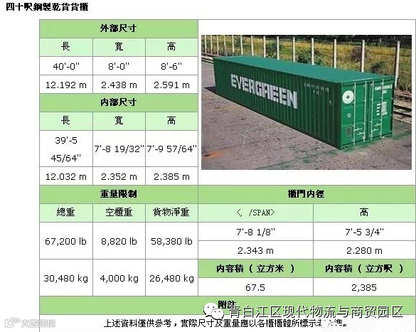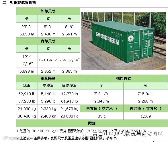 备注:集装箱适用于装载大型货物和重货,如钢铁、木材,机械,特别是像玻璃板等易碎的重货
