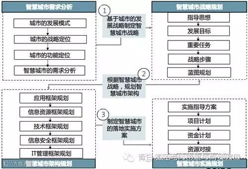 再次,智慧城市要借助于信息化手段,因此,所谓的实施规划,根本上就是做好信息化规划。这是大前提。别的什么概念都是空中楼阁。