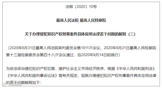 其实,早在2020年9月,“两高”就发布了最新的司法解释说,侵犯知识产权的行为可以入刑,这是尊重和保护知识产权,维护公平竞争的市场秩序的基本要求。