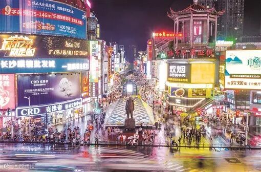 图为:7月31日晚,长沙市黄兴南路步行街霓虹灯璀璨,人来人往,十分热闹。近年来,长沙市积极顺应消费升级趋势,大力发展夜经济,打造了“夜食、夜游、夜购、夜娱、夜行”等特色鲜明、内容多元的夜间消费目的地,夜经济“亮”出新态势。
