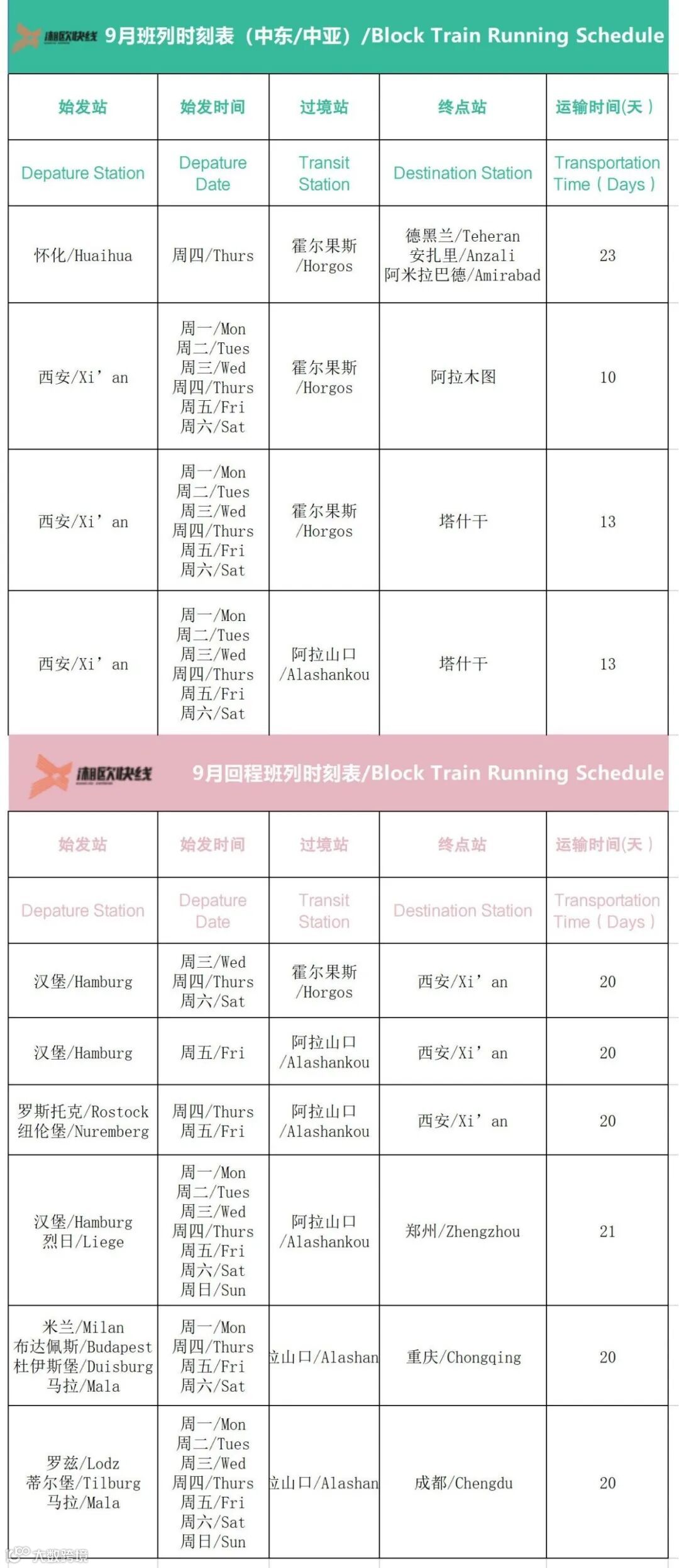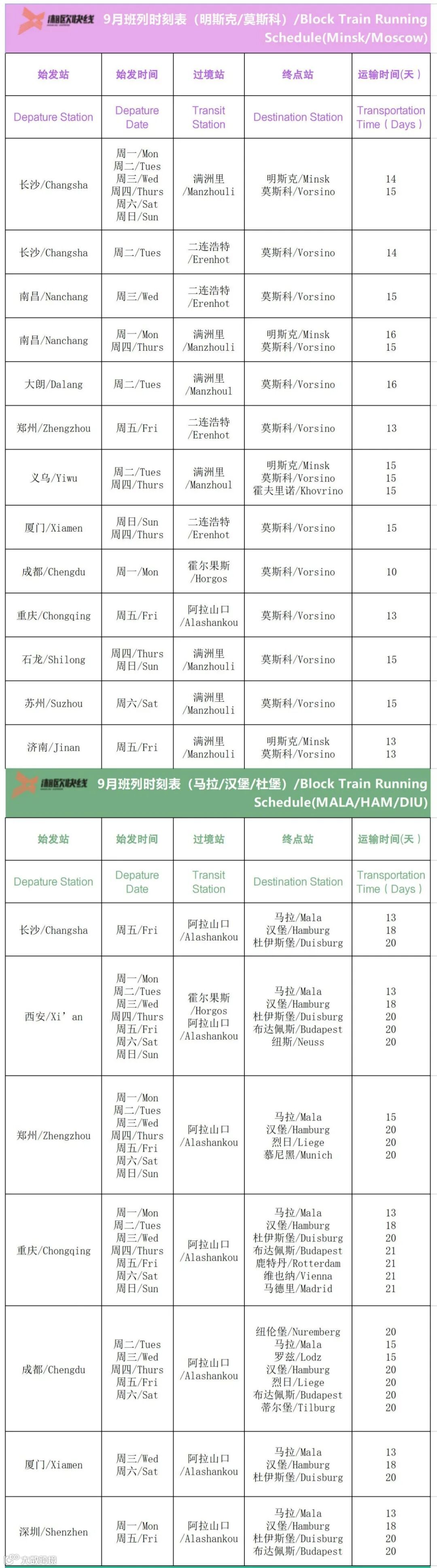 湘欧快线2021年9月份班列运行时刻表发布啦!