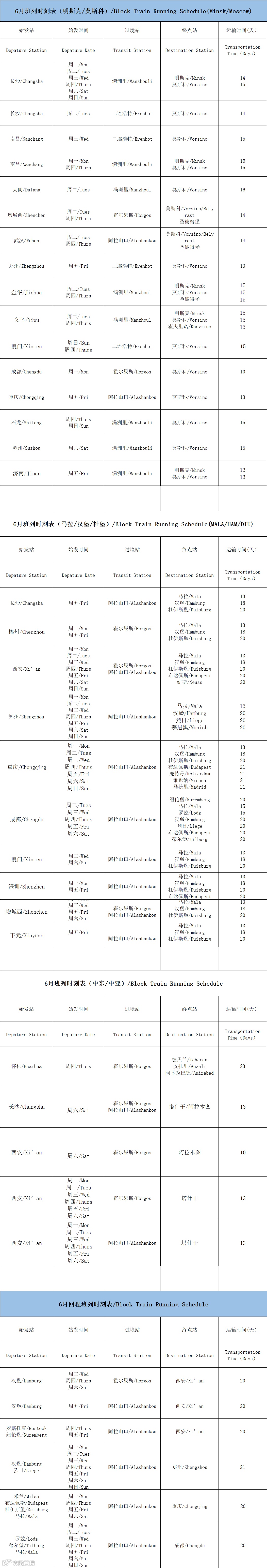 湘欧快线2022年6月份班列运行时刻表发布啦!