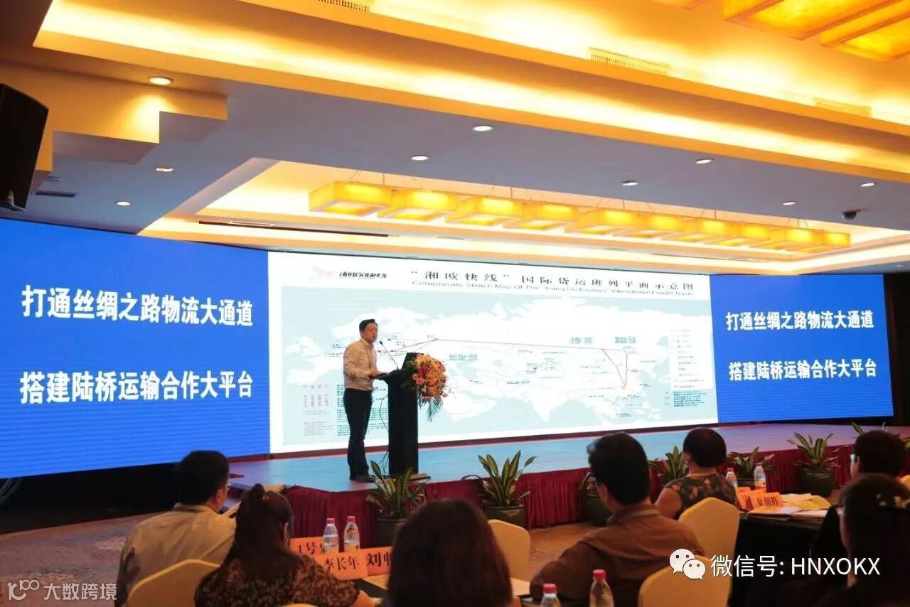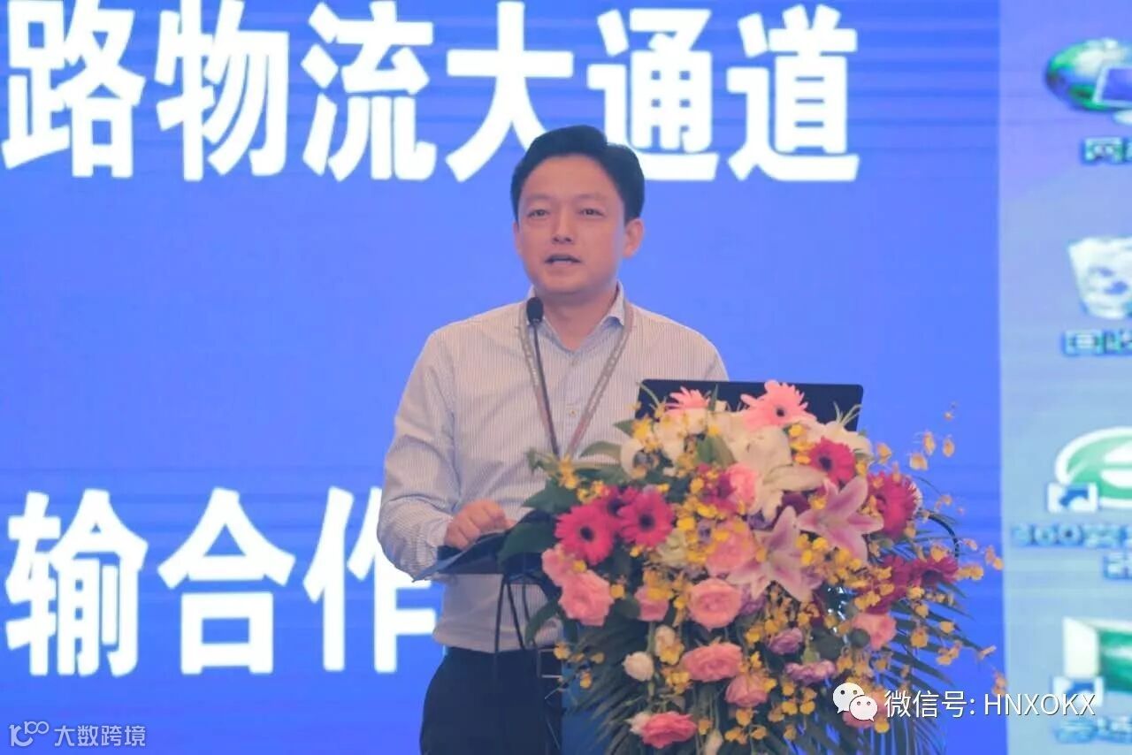 (图为湖南湘欧快线物流有限公司总经理夏朝辉在做主题演讲)