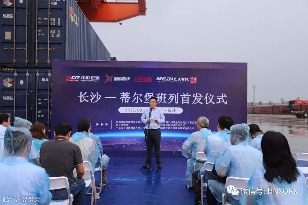 8月17日下午,刚刚还蓝天白云、晴空万里,转眼间倾盆大雨。这个传统的七夕节,湘欧快线物流有限公司在广铁集团长沙北站铁路货场成功举行长沙—蒂尔堡国际货运班列首发仪式,中欧班列再添一条湖南新线路。