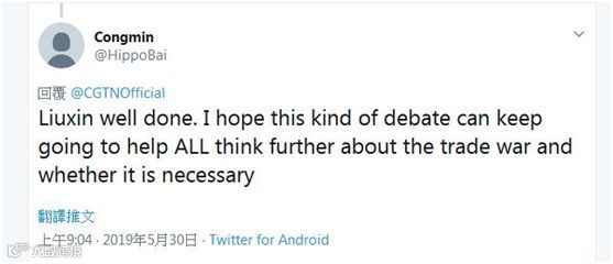 还有人说“刘欣做得很好”:“我希望这种辩论能够继续帮助所有人进一步思考贸易战,以及贸易战是否有必要。”↓