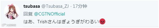 还有日本网友注意到了“刘欣开场白被崔西至少三次插话”这个细节,认为“崔西没礼貌”。↓