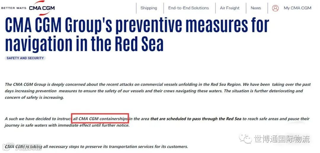 继MSC、马士基、达飞以及赫伯罗特等四大航运巨头宣布旗下所有船舶暂停在红海航行后,又有四家船公司爆料已经口头暂停红海航线货物订舱!
