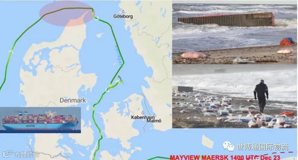 获悉:一艘船名为MAYVIEW MAERSK,运力高达18340Teu的超大型集装箱船,在北欧海域遇险,事故导致至少46个集装箱货物落水!