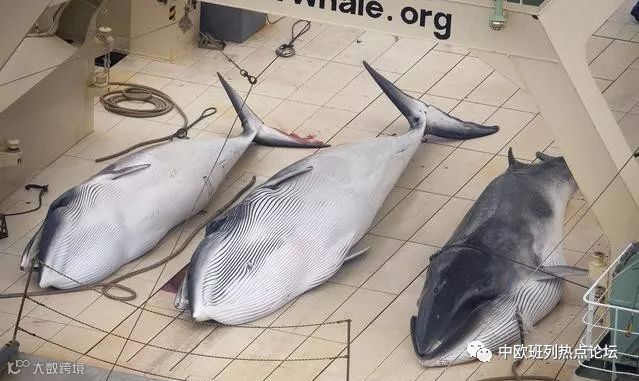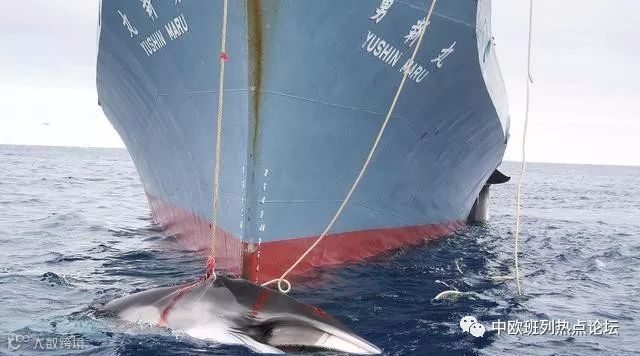 现时日本正进行的一个鲸鱼类科研计划NEWREP-A会持续到2026-2027年捕鲸季,期间估计会有约4000条鲸鱼惨死于科研借口之下。IWC一份报告显示,日本NEWREP-A计划2017年在南冰洋捕捉并宰杀共333条小须鲸,其中有122条怀孕鲸鱼及114条幼鲸。图为日本捕鲸船捕获的一条小须鲸。